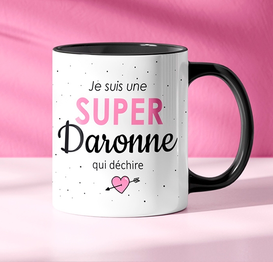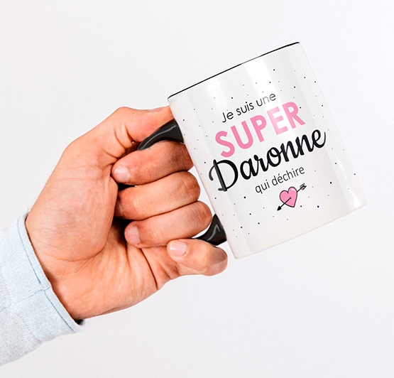 Mug en Céramique blanc, anse et intérieur noir. Mug Daronne qui déchire - Créé par l’Épicerie Chérie.