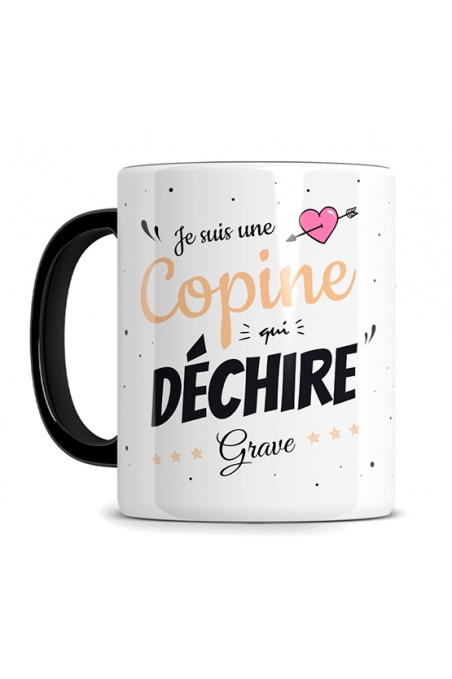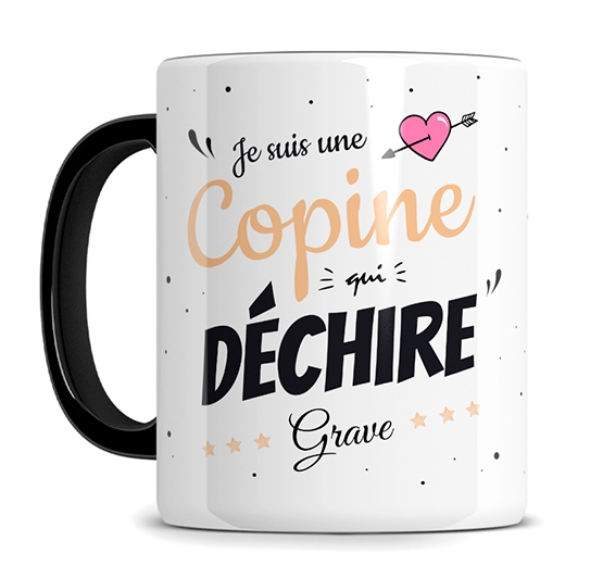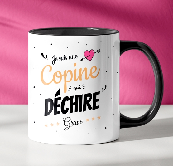 Mug en Céramique blanc, anse et intérieur noir. Mug Copine qui déchire Rose - imprimé des deux cotés. Créé par l’Épicerie Chérie